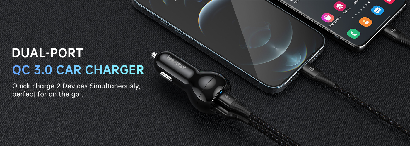 30W Car Charger combining a subtle design with high performance. Charge mobile devices (digital cameras, PDAs, mobile phones, USB accessories etc.) in the convenience of your car. Equipped with one USB C and one USB A connector, you can charge two devices at the same time at the same time with a maximum output of 30 watts.