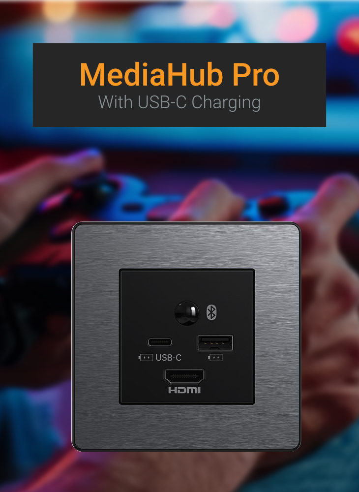 The addition of USB-C to the MediaHub range means guests benefit from high speed charging for the latest mobile phones and tablets.