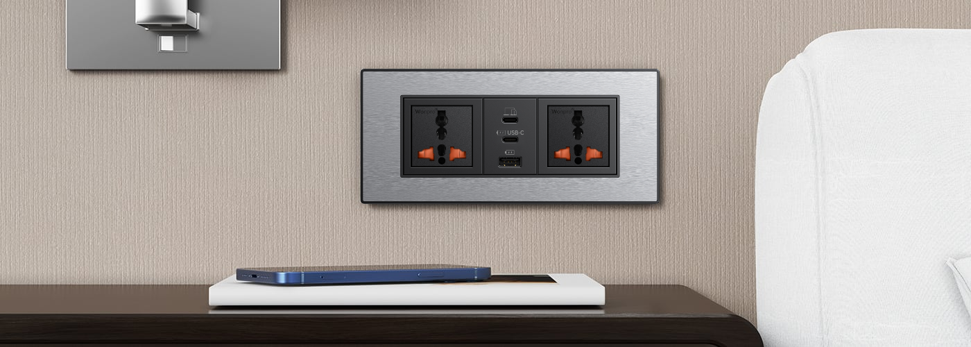 Provides guests with 2 easy-to-find universal outlets and 3 USB charge ports.