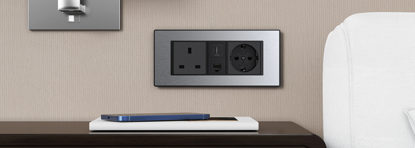 - Provides guests with two easy-to-find EU & UK grounded power outlets.