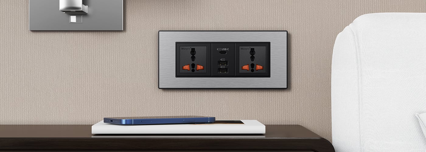 This fully-enclosed and corded product is designed to be mounted flush into furniture and case goods. The PowerHub USB C is a convenient and simple way to put additional power outlets and two USB A and one USB C ports right where your guests need them most. Install by the desk for laptop power or mount flush in the nightstand to offer bedside charging for smartphones, tablets or laptops overnight.