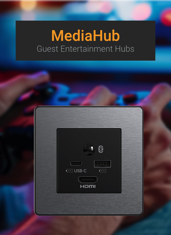 MediaHub UHD allows your guests to easily connect their smartphone, tablet or laptops to the guest room TV to view their own content in stunning ultra high definition. With built-in Bluetooth audio and USB charging, MediaHub UHD has all bases covered.
