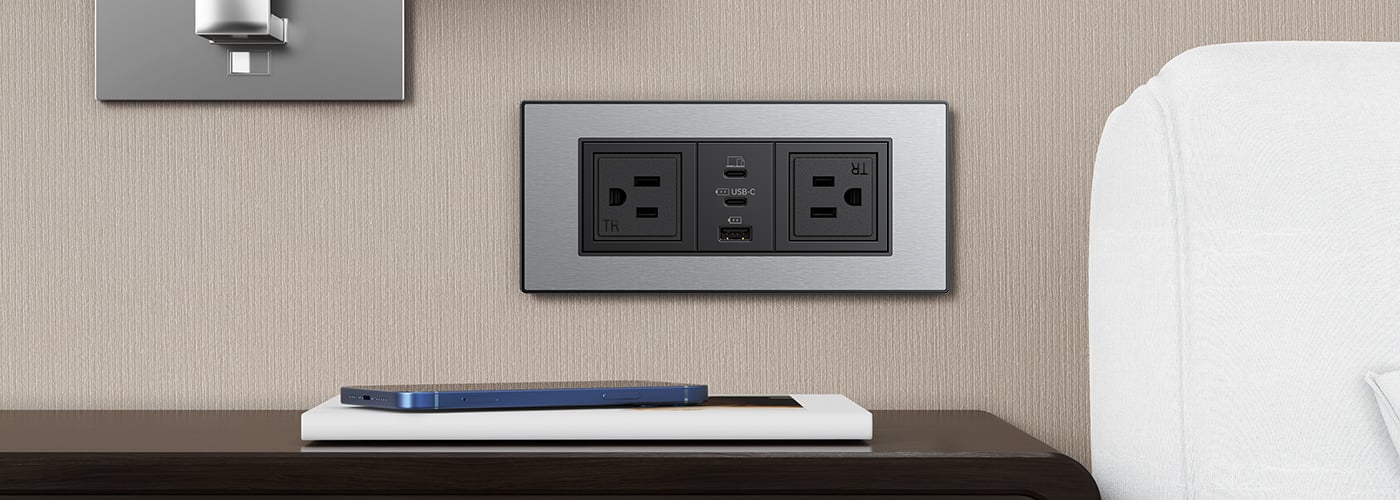 Provides guests with 2 easy-to-find electrical outlets and 3 USB charge ports.