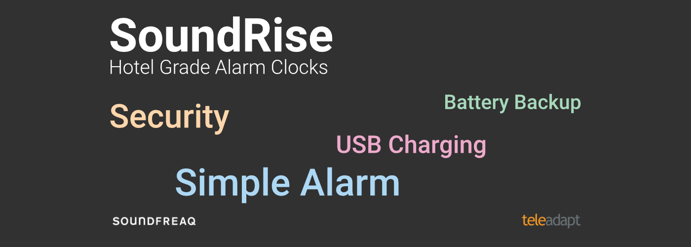 At TeleAdapt we understand the importance of excellence in design and styling for hotel guest room products. The SoundRise range of hotel alarm clocks from Soundfreaq combine great design and styling with hotel features including charging and security.