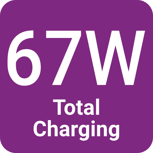 - Up to 67W charging - 45W USB-C, 12W USB-A, 10W Qi.